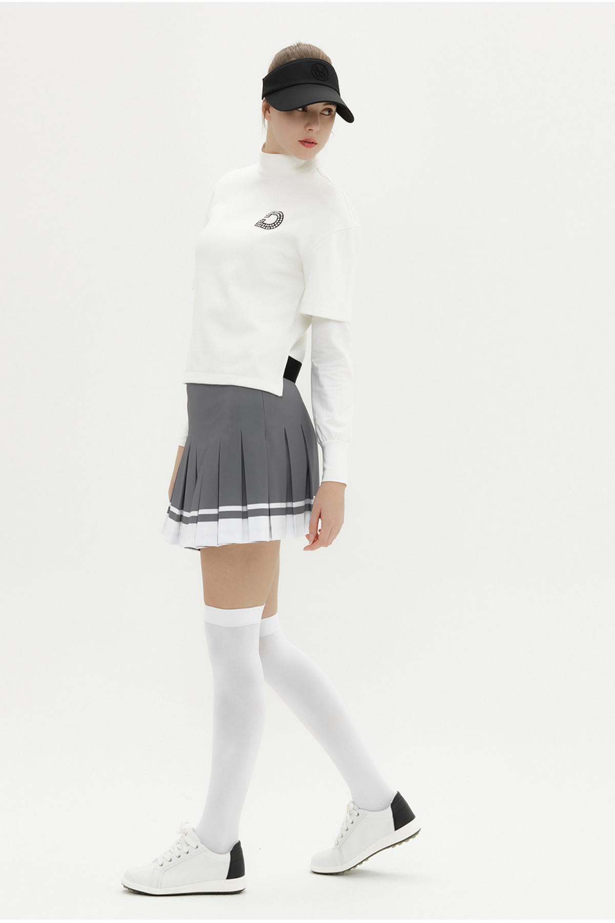 ハーフネックラウンドTシャツです。伸縮性が優れており、滑らかな着用感とスリムなボディラインを演出します。